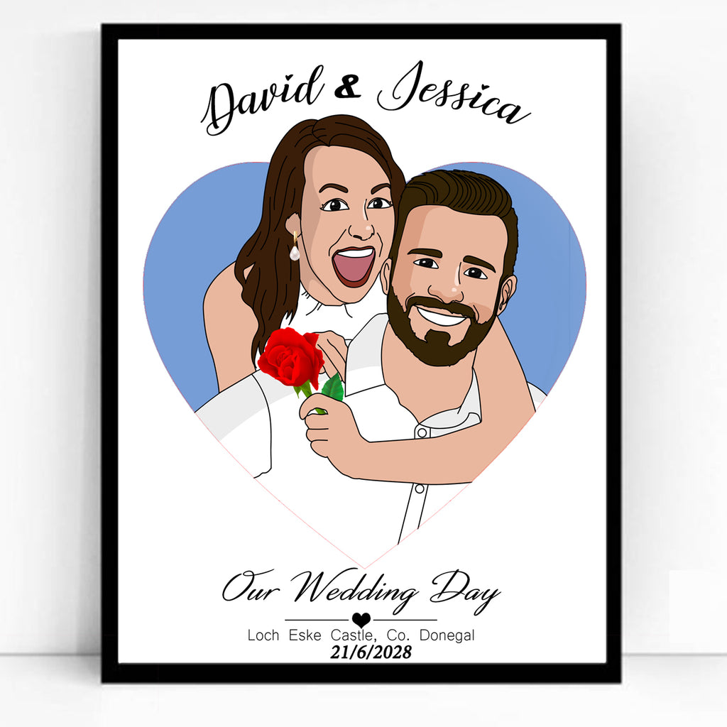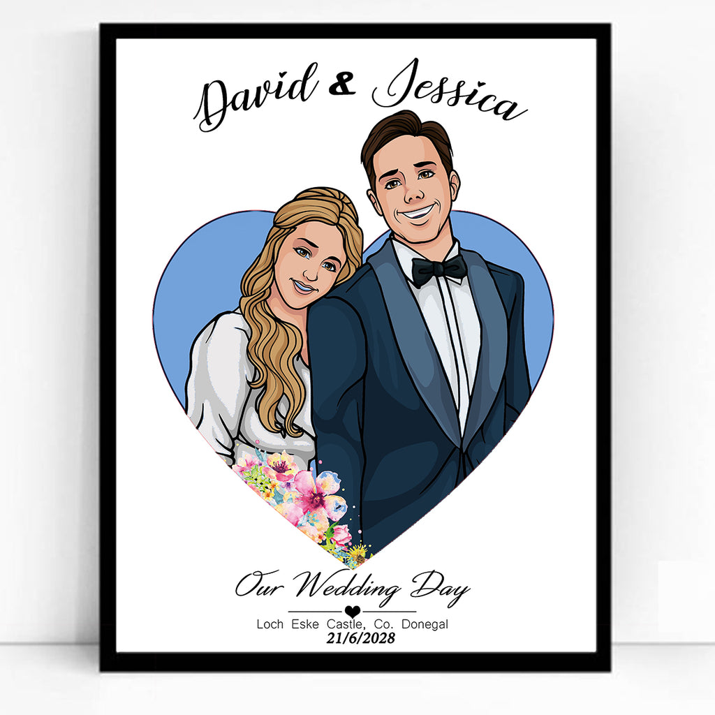 Whether you're looking for a fun guestbook alternative, a quirky wedding favor, or a standout gift for the newlyweds, our caricatures offer a playful yet artistic way to honor this special moment. They also make a great keepsake, allowing the couple to cherish their big day in a truly one-of-a-kind form.