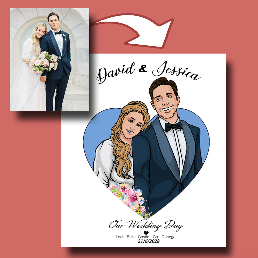 Add a touch of humor and creativity to any wedding with our Personalized Hand-Drawn Caricature Gifts. Designed to capture the personalities and quirks of the bride, groom, or entire wedding party, these caricatures are a fun and memorable way to celebrate the big day.