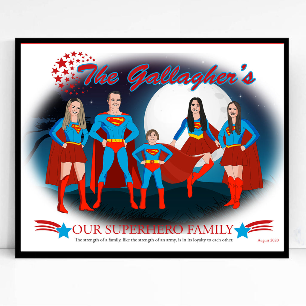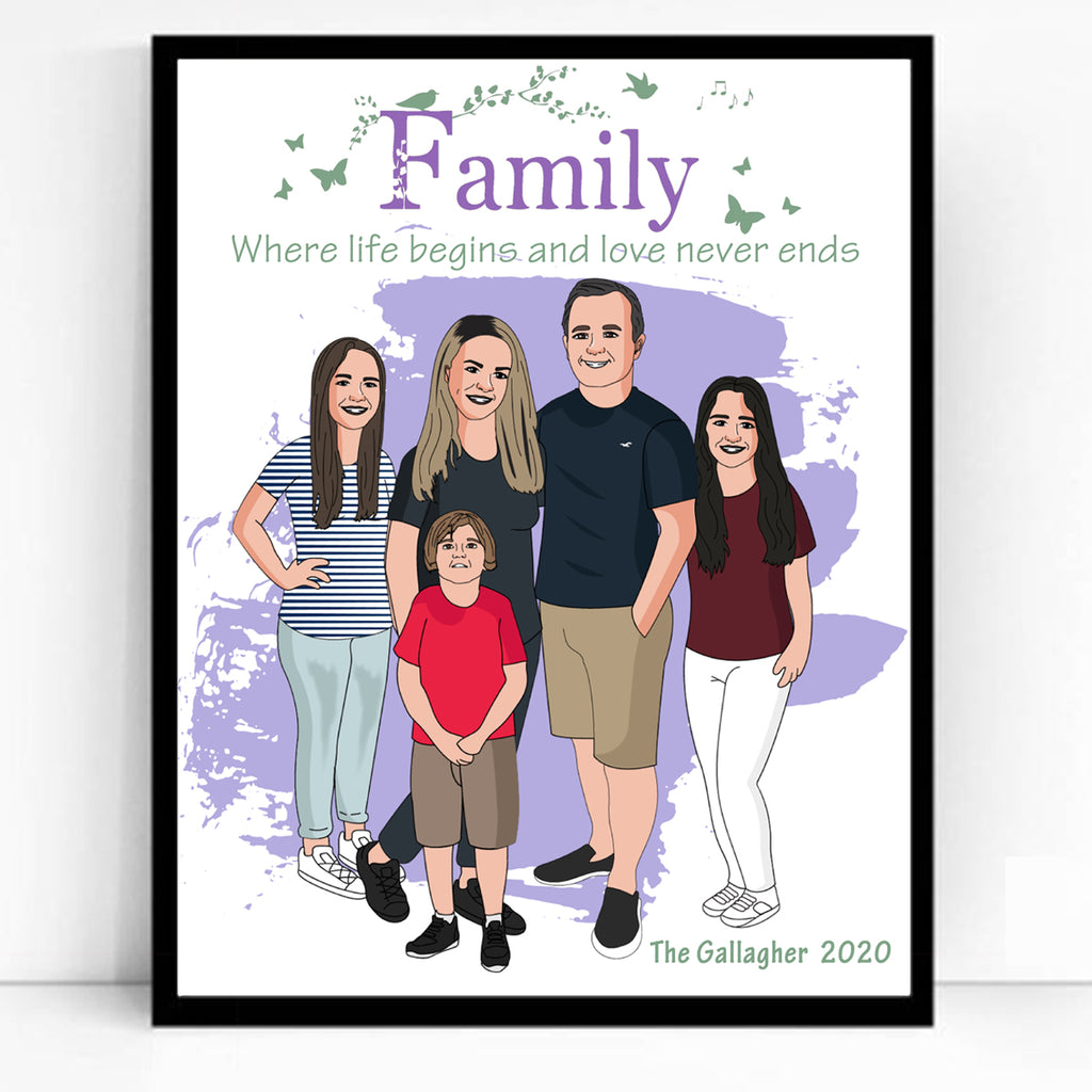 Each caricature is carefully crafted to reflect the personalities and quirks of each family member, creating a unique piece of art that’s sure to bring smiles and laughter. Perfect for gifts, home décor, or simply a fun keepsake, our family portrait caricatures are custom-tailored to your vision and delivered within 2 weeks.