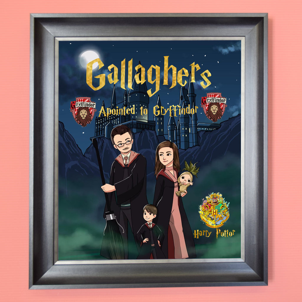 Perfect as a gift for your favorite Potterhead or to adorn your own wizarding lair, each caricature is brewed with the finest artistic spells. From your very own house robes to a wand at the ready, every detail is tailored just for you. No need to whisper Accio Gift—your custom masterpiece will be delivered to your door within 2 weeks. Whether for a birthday, a surprise, or just a touch of magic in your life, this one-of-a-kind wizard portrait is sure to cast a charm of delight!