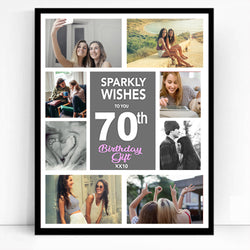 Sparkly Wishes On Your 70th Birthday - Framed Photo Collage