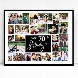 A 70th birthday is a celebration of a lifetime, seven decades of family, friendship, laughter, and stories worth remembering. Mark this incredible milestone with a personalised framed photo collage or a custom birthday banner, designed to showcase the memories that made them who they are.