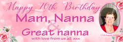 Mums Floral 70th Birthday Party Personalised Photo Banner