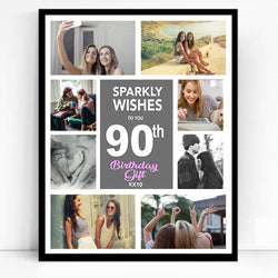 Sparkly Wishes On Your 90th Birthday - Framed Photo Collage