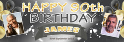 Black + Gold 90th Birthday Personalised Birthday Banner