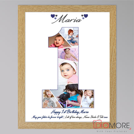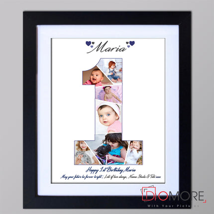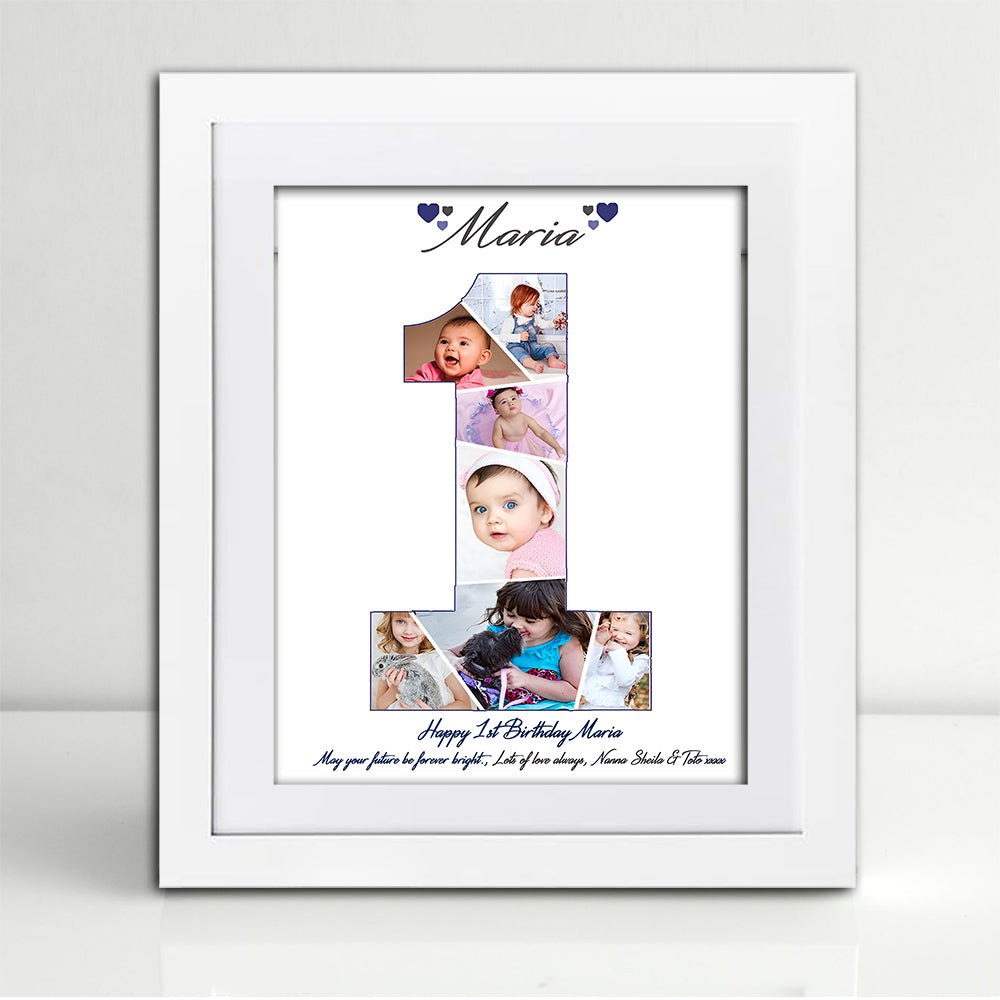 1st Birthday Framed Photo Collage is a brilliant idea and one of our best sellers for birthdays and wedding anniversaries. Gather your best photos from the day or event and let us make a collage Keep your best memories in every day sight as this would look good in any living room or hallway. This collage is ideal for an Engagement, Wedding or Anniversary.