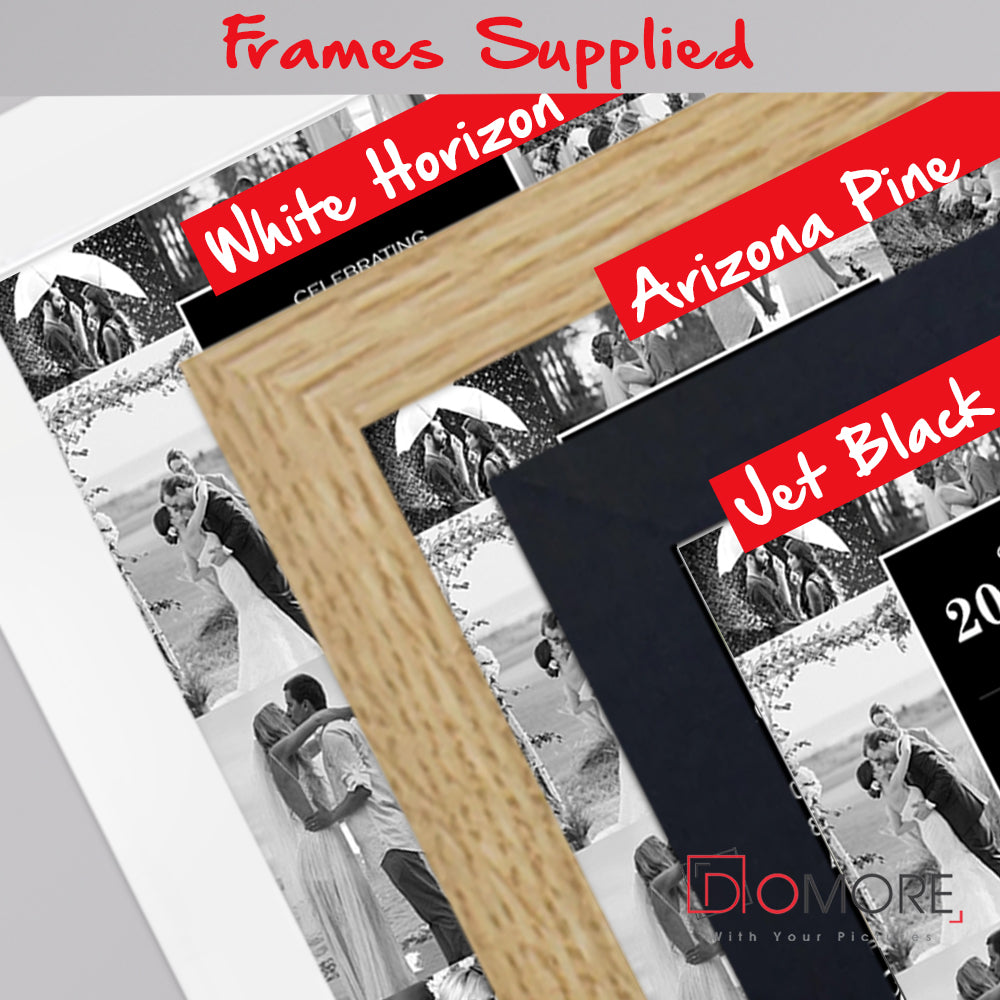- Frame Included: No need to search for the perfect frame—we’ve got you covered! Choose from two classic styles (black or white), both ready for hanging. Your collage will arrive framed and fabulous, just like your relationship.