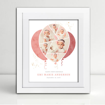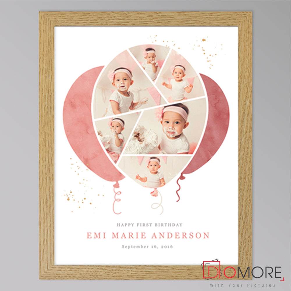 A beautiful photo collage ot celebrate a first birthday or any occasion. This Vertical frame is personlised and totally unique to you for celebratre 1st Birthday and keep the memorys in a frame , It can includes all the important information , the more information you give us the better.The best part, after 20 years designing sentiment frames, no two sentiment frames are ever the same.