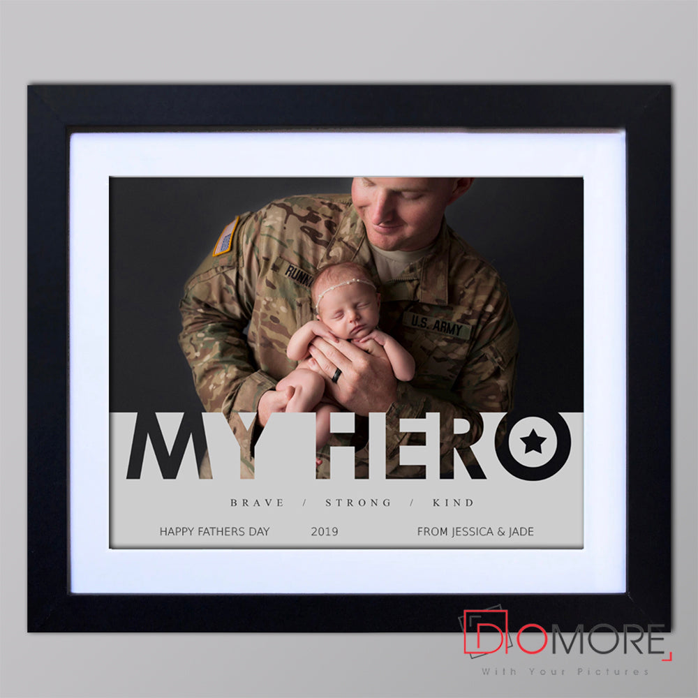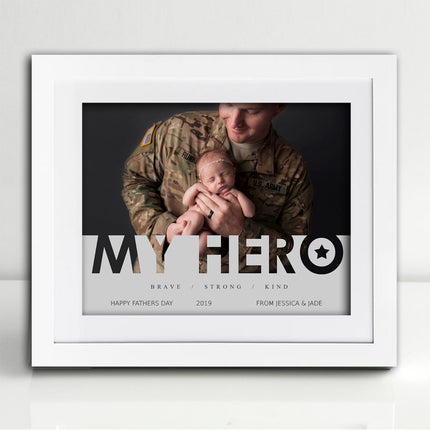 Personalised Picture Frame showing the special bond between Dad that works away with the army and Child