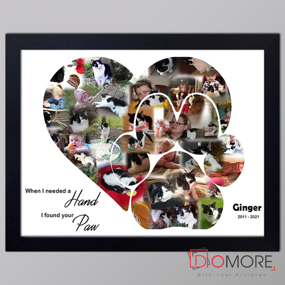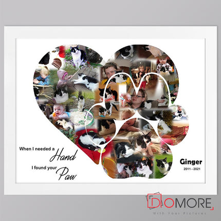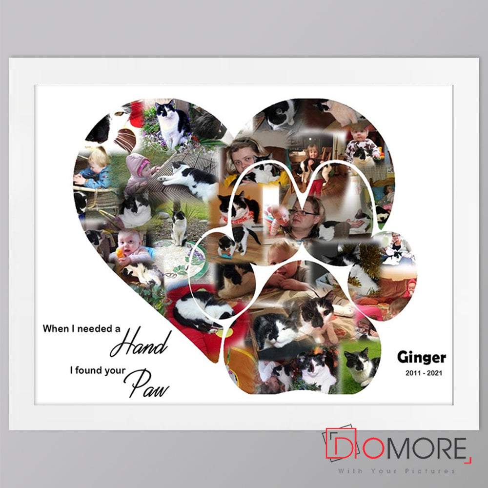 Dog paw Shape- framed Photo Collage is a brilliant idea and one of our best sellers. Gather your best photos of your pet and memories of Pet and let us make a collage Keep your best memories in every day sight as this would look good in any living room or hallway.