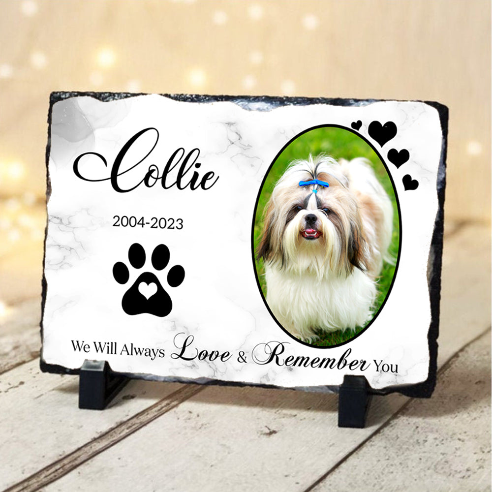 Made from beautiful natural slate, this timeless keepsake features a heartfelt design that captures the deep bond between you and your pet. Whether displayed in your home, on a shelf, or in a memorial garden, it serves as a daily reminder of the unconditional love they gave.