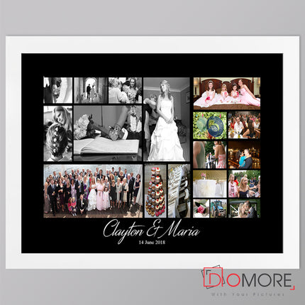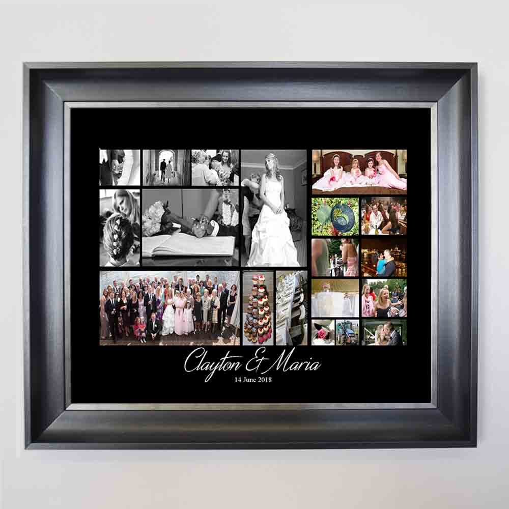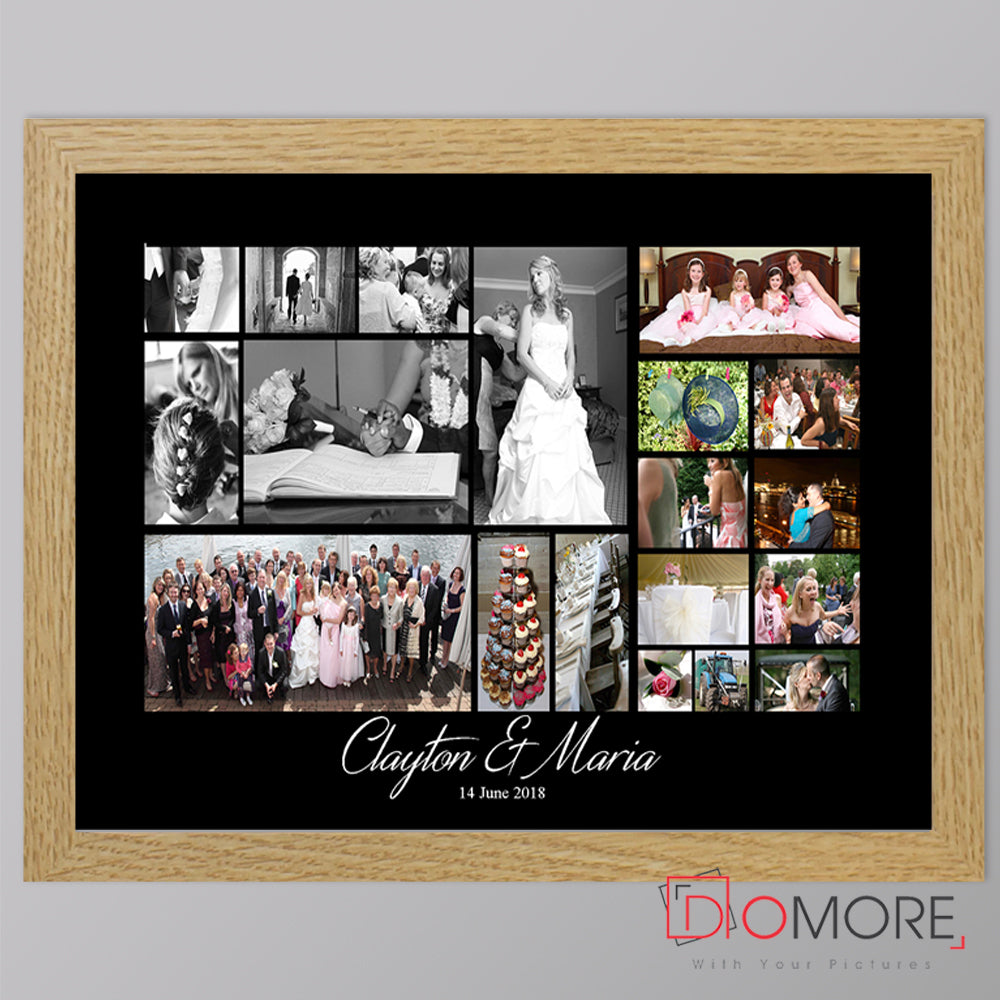 From This Day Wedding Framed Photo Collage is a brilliant idea and one of our best sellers. Gather your best photos from the day or event and let us make a collage Keep your best memories in every day sight as this would look good in any living room or hallway. This collage is ideal for an Engagement, Wedding or Anniversary.