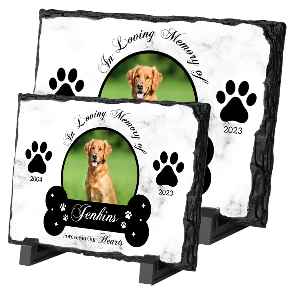 Made from beautiful natural slate, this timeless keepsake features a heartfelt design that captures the deep bond between you and your pet. Whether displayed in your home, on a shelf, or in a memorial garden, it serves as a daily reminder of the unconditional love they gave.