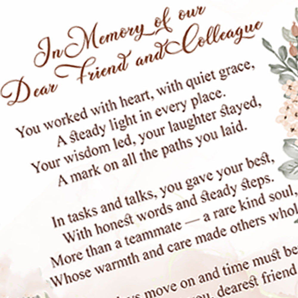 Honor the life and legacy of a respected coworker with this personalised memorial slate. Our In Memory Of A Valued Work Colleague plaque is a thoughtful way to create a lasting remembrance gift for a workplace friend or team member who has passed away.