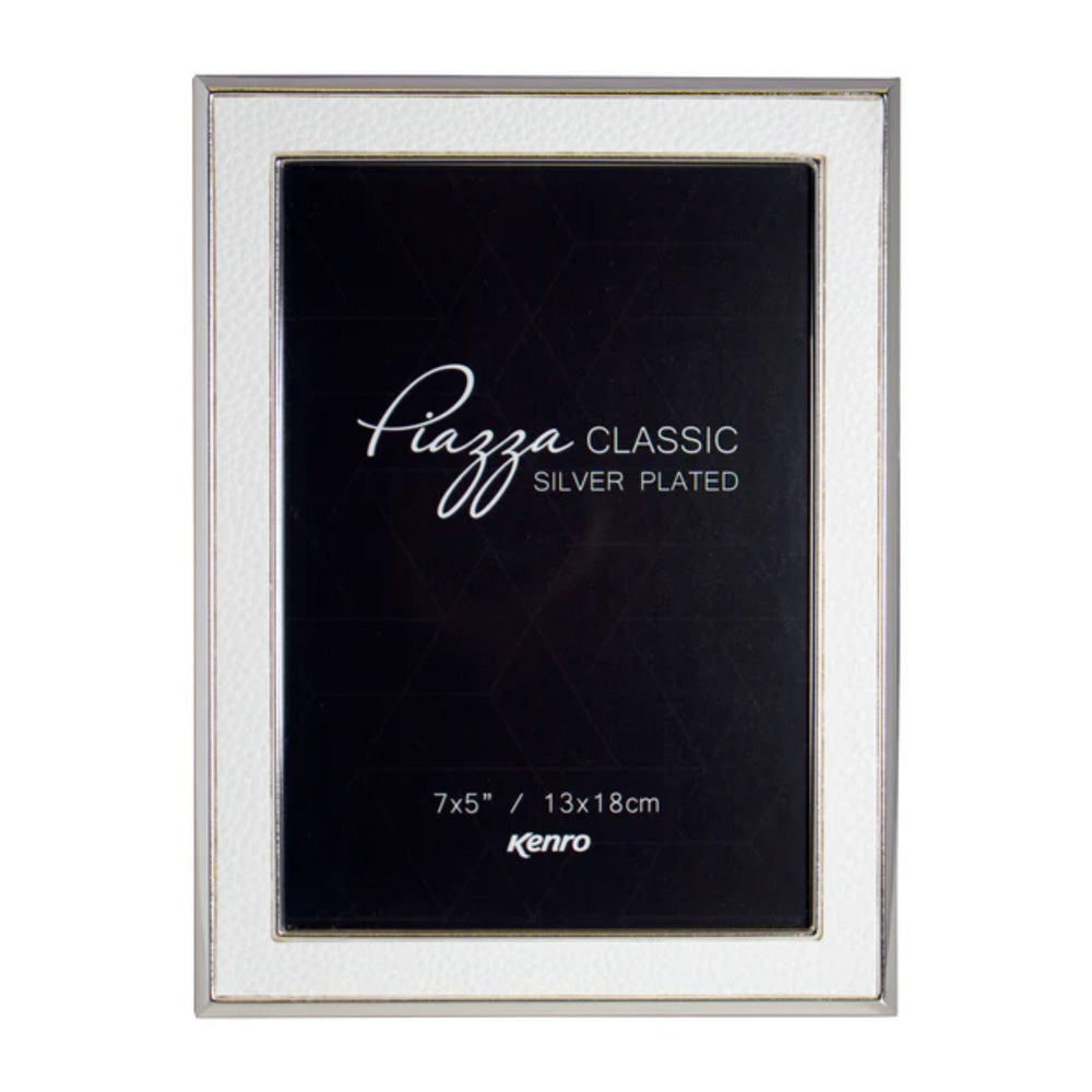 Kenro Piazza Silver Photo Frame With White Inlay 7X5 Inch – With Free Photo Print
