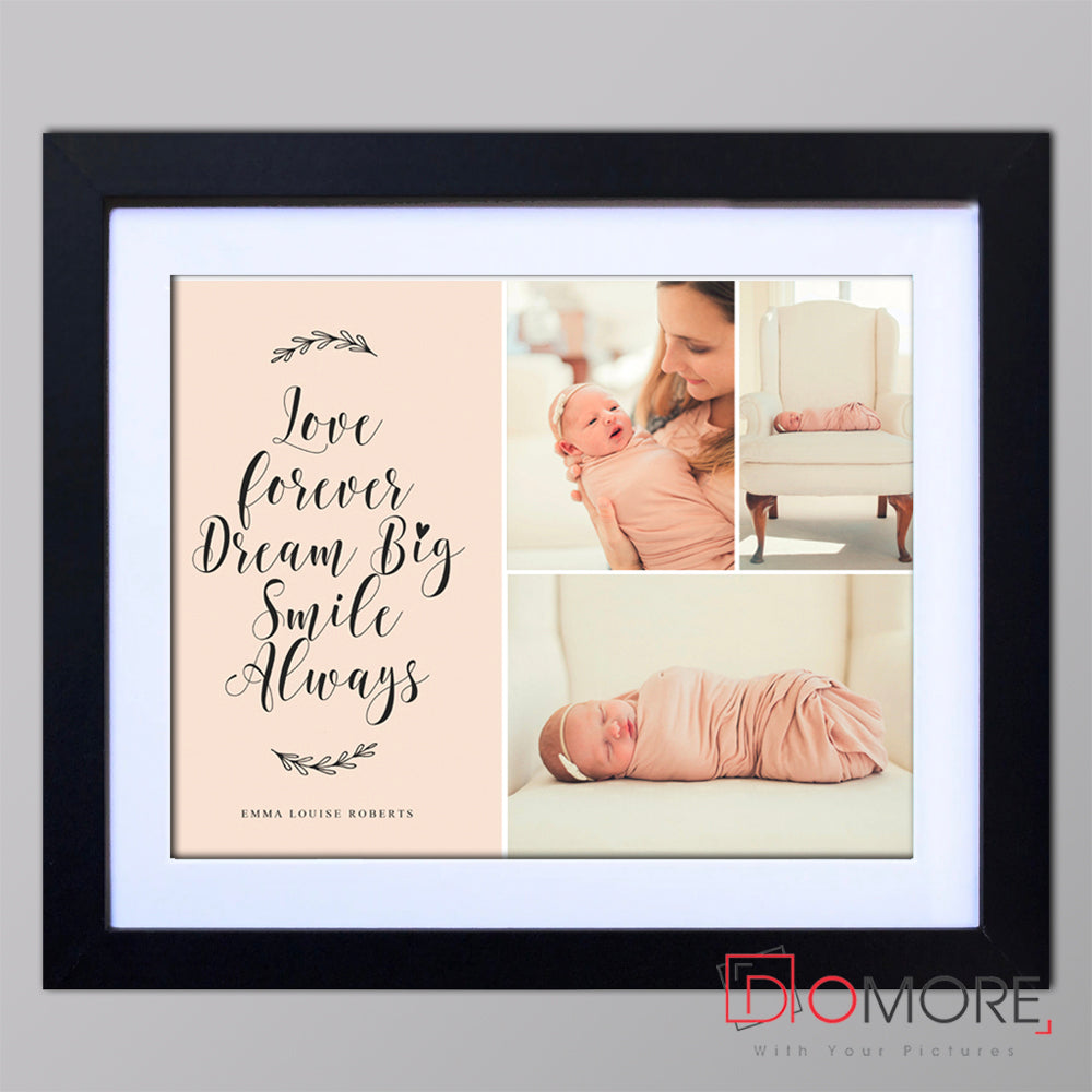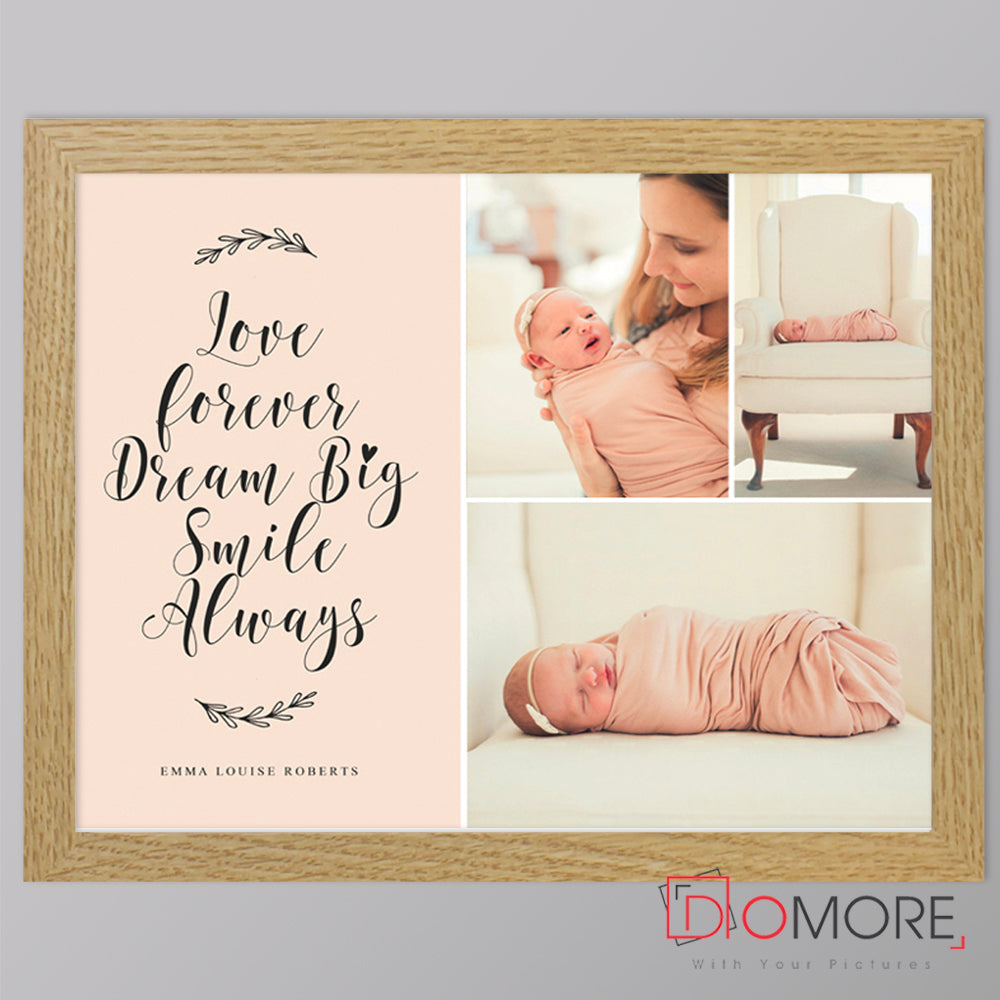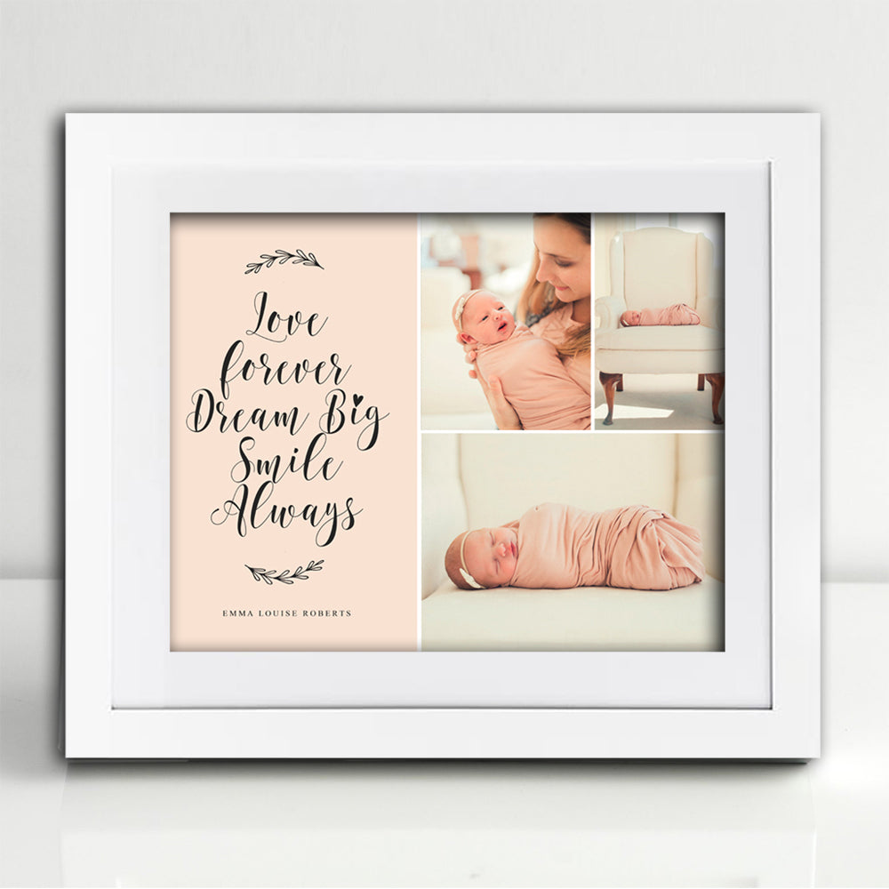 10 x 8 Inch Print in 12X10 Frame - 1 - 3 Photos recommended12 x 10 Inch Print & Frame - 1 - 6 - Photos recommended16 x 12 Inch Print & Frame (A3) - 10 - 25 Photos recommended20 x 16 Inch Print & Frame (A2) - 10 - 50 Photos recommendedThe more photos added, the smaller they become