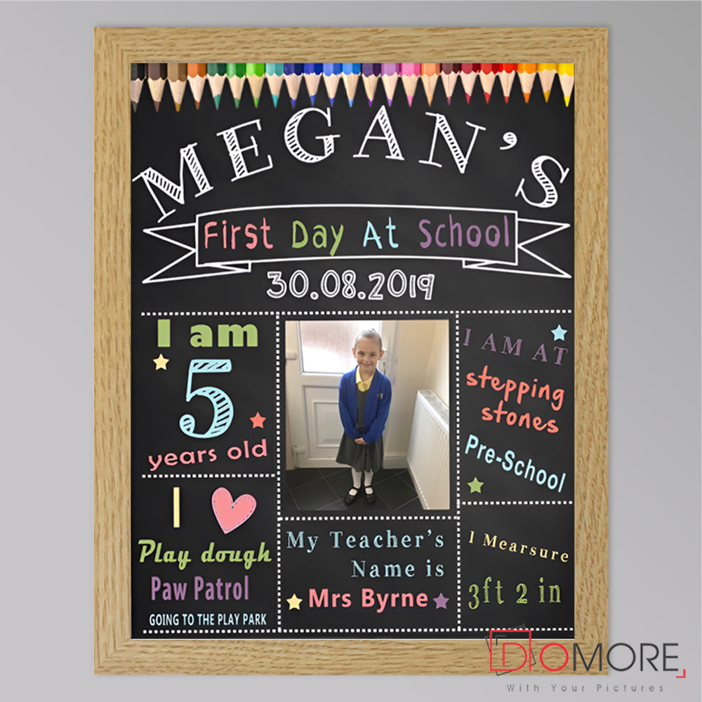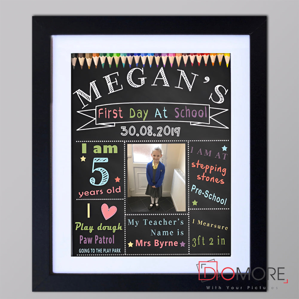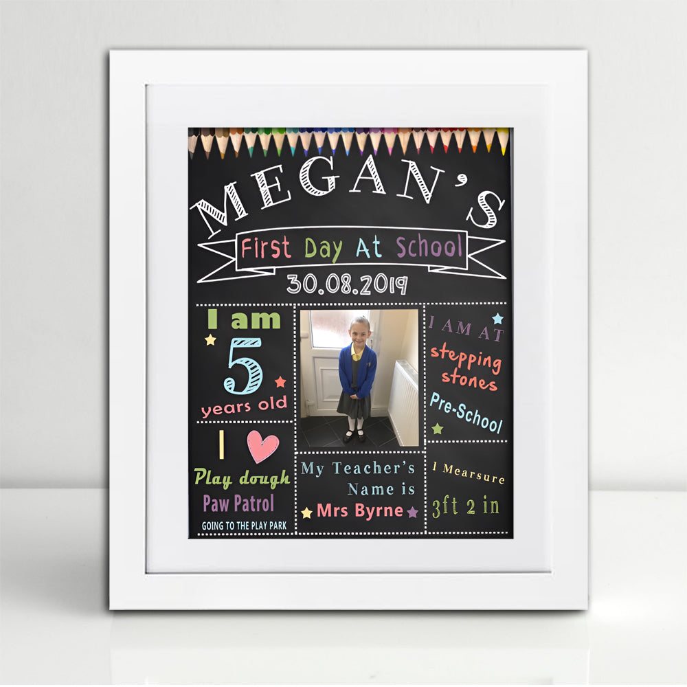 Personalised Lovely Picture Frame with your childs 1st Day of School memory.