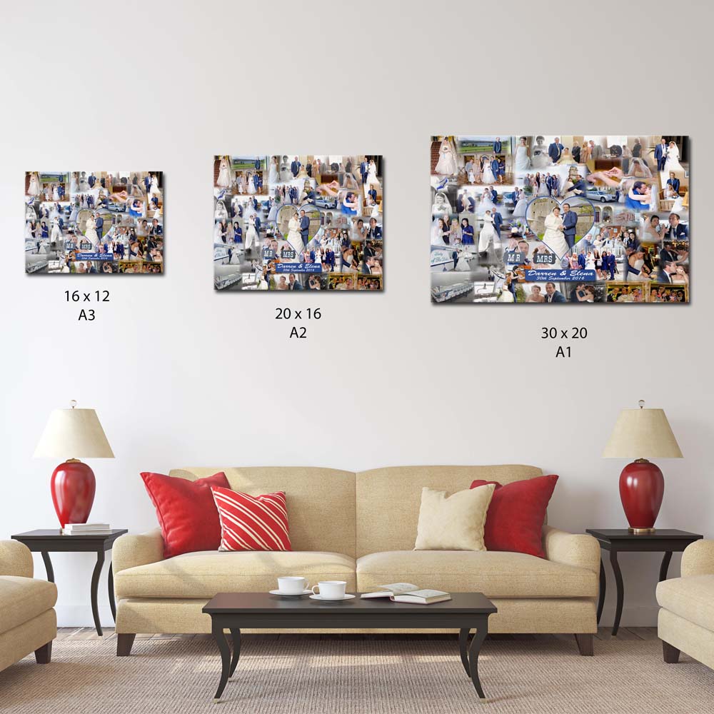 Our Wedding Bubble Photo Collage on canvas is a brilliant idea and one of our best sellers. Gather your best photos from the day or event and let us make a collage Keep your best memories in every day sight as this would look good in any living room or hallway. This collage is ideal for an Engagement, Wedding or Anniversary.