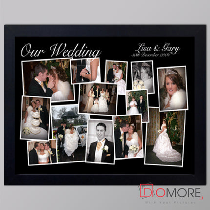Our Wedding Framed Photo Collage is a brilliant idea and one of our best sellers. Gather your best photos from the day or event and let us make a collage Keep your best memories in every day sight as this would look good in any living room or hallway. This collage is ideal for an Engagement, Wedding or Anniversary.