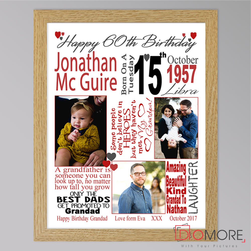 Personalised Picture Frame for celebrate your loved ones 60th Birthday. A truly unique & thoughtful gift !