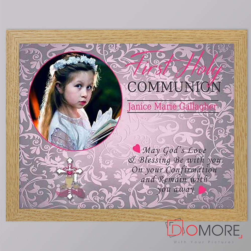 Celebrating a Little Girls 1st Holy Communion Day is a big milestone. This horizontal frame is personliased and totally unique to you for little girl holy 1st Holy Communion , It can includes all the important information , the more information you give us the better. The best part, after 20 years, no two sentiment frames are the same.