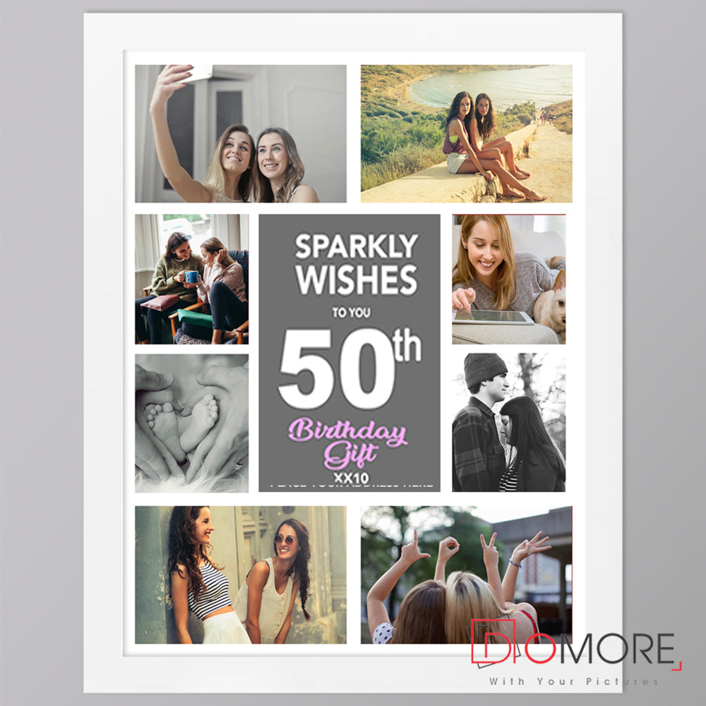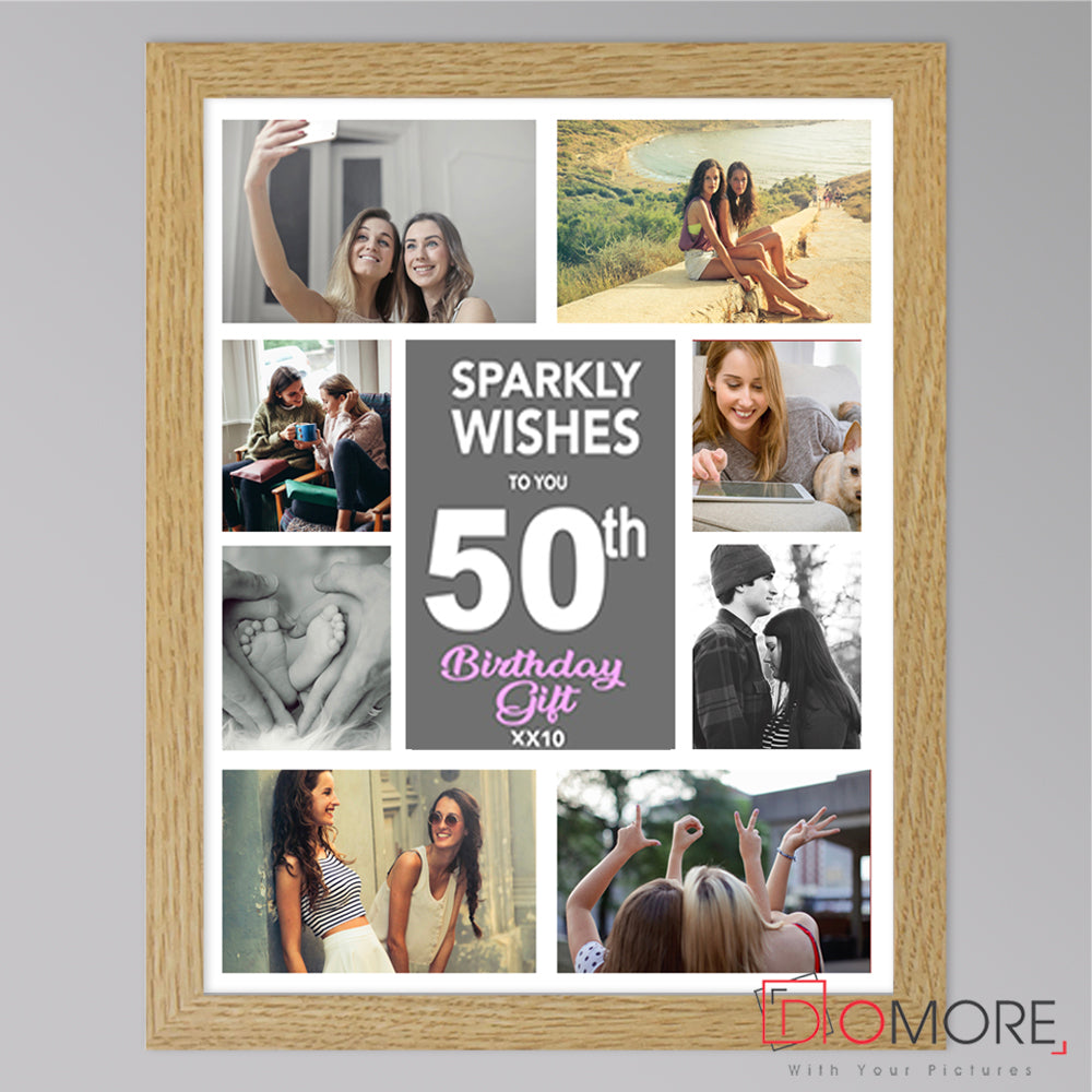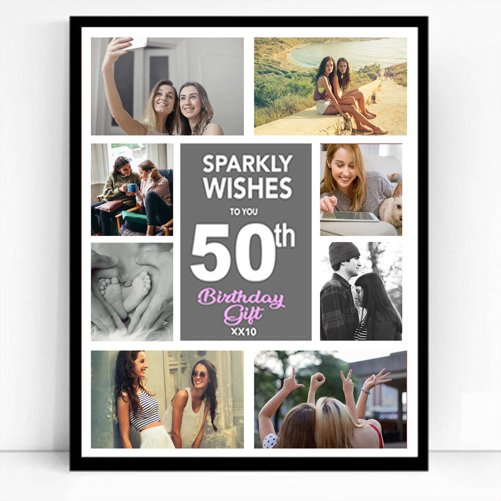 Sparkly Wishes On Your 50th Birthday - Framed Photo Collage