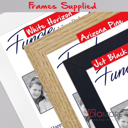 All our products are bespoke, so if you wish we can add 1 photo or 8, Our images only show a sample. This horizontal frame is personlised and totally unique to you, We make everything bespoke so easy to change colour, It can include all the important information , the more information you give us the better. The best part, after 20 years designing sentiment frames here in Killybegs, no two sentiment frames are ever the same.